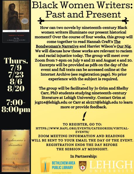 - Presented in partnership with Lehigh University Dept. Of English and facilitated by Jo Grim and Shelby Carr