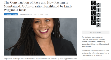 - Read about the first session, Race and Racism: The Construct of Race and How Racism is Maintained, in the Southsider