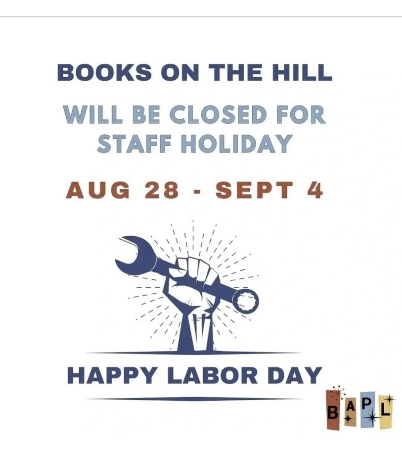 September 3, 2024 Books on the Hill will be closed from August 28-September 4 Share EmailTwitterFacebookGoogle +PinterestTumblrLinkedinVkontakte Books on the Hill will be closed from August 28-September 4. It will re-open Thursday 9/5 for its usual schedule. September 3, 2024 Schedule Alerts