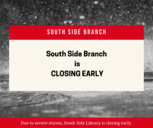 Due to the impact of serious storms in the area π§οΈβοΈ, we regret to inform our patrons that the South Side Branch of the Bethlehem Area Public Library π will be closing early today, April 3.