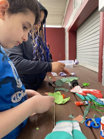 After tidying up the park, the students came in for a storytime with BAPL’s Cleveland Wall. Cleveland read them Kamala and Maya’s Big Idea by Meena Harris, and they talked a bit about their project. When asked what inspired the project, Kali said she had noticed the parks needed a clean-up, but everyone seemed too busy to do it, so she decided to do it herself–and enlisted the help of her classmates to make an even bigger impact. Lehigh student Griffin Fox said he was inspired to see young leaders standing up to better their community. “These kids have bright futures ahead of them,” he said, “and I’m just proud to have facilitated such an important event.”
