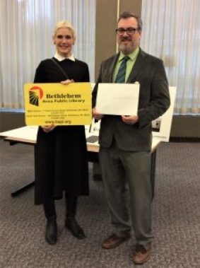 The Bethlehem Area Public Library is pleased to announce it has received a generous grant of $10,000 from the R.K. Laros Foundation. The funds will support the transformation of the Bob Cohen Room at BAPL, assisting with the purchase of a floor-to-ceiling glass movable wall for the renovated space, and were presented to Library Executive Director Josh Berk on Friday, January 12, by Laros Trustee Laura Bennett Shelton.