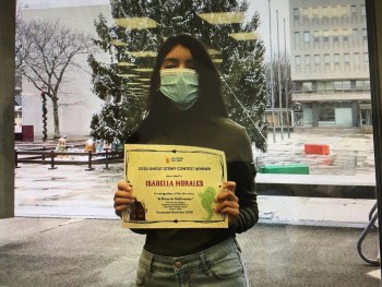 Liberty High School student, Isabella Morales (at right), won First Place for her story entitled “A Bizarre Halloween.” Andrea Girardot’s story “Hey, Yasuko” was the winner in the 10-12 year-old category, and finally “The Legend of Hope Mist,” submitted by Kai Thomas, won in the youngest category.