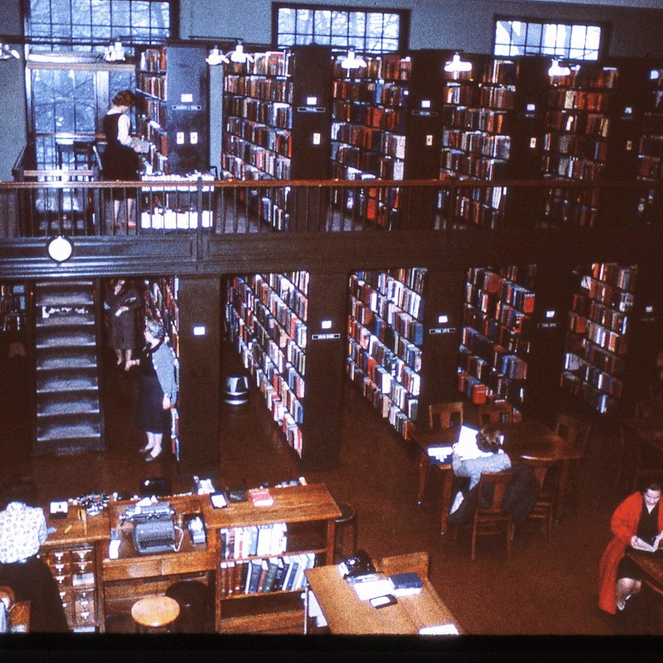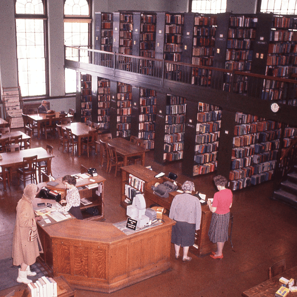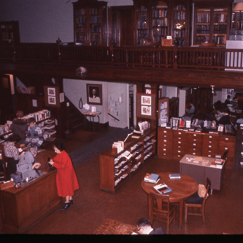 While the current Main Library at City Center (11 W. Church St.) has been here for over 50 years, many Bethlehemites have fond memories of the prior home of BAPL on Market Street. A few folks have recently asked for pictures so we thought would be fun to dig through the archives and share some gems here. These are scans of slides from the library files. If you see any errors, let us know! The building, located at 11 Market Street, is now part of Moravian Academy. It served as the BAPL central library from 1925-1967. Much has changed, but much remains the same!